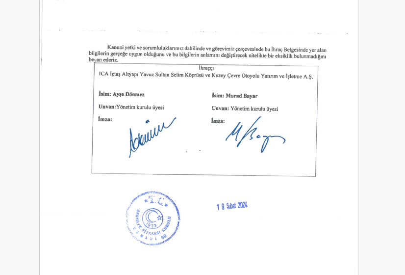 ICA, AVRUPA ÜCRETLİ YOL ALTYAPI OPERATÖRLERİ BİRLİĞİ (ASECAP) ÜYESİDİR.